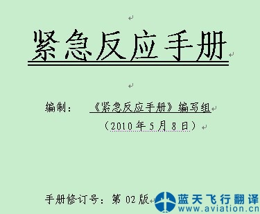 近日,承接老客戶(hù)航空公司(某國(guó)有大型航空公司)的《緊急反應(yīng)手冊(cè)》(Emergency Response Manual)(ERM)中翻英翻譯任務(wù),公司積極組織譯員,調(diào)取相應(yīng)資料庫(kù),保證質(zhì)量,爭(zhēng)取客戶(hù)滿(mǎn)意。 ![]() 緊急反應(yīng)手冊(cè)截圖