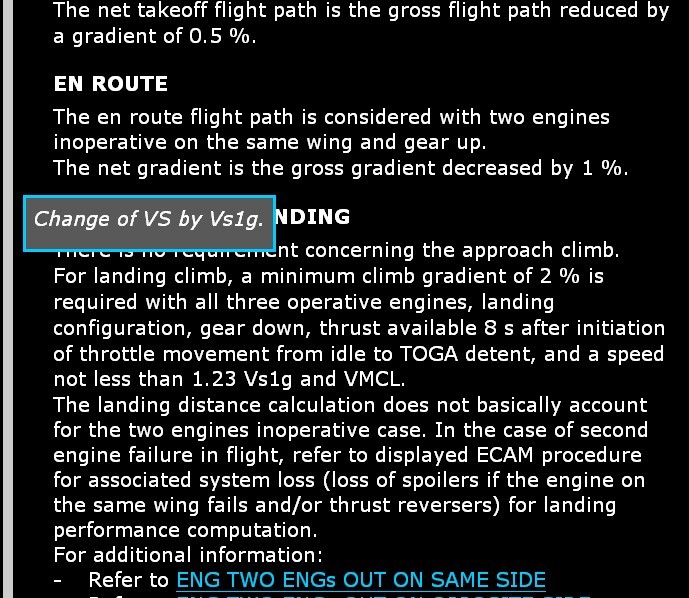 <parahl> </parahl>標(biāo)簽及其作用 比如<parahl>Change of the wording "V1 Ferrying" by VSTOP.</parahl> 其在LPC中顯示如下: ![]() 修改要點(diǎn)在LPC中的顯示 <parahl>Change of VS by Vs1g.</parahl> ![]() Highlights in LPC 由此可以看出,parahl功能是在LPC DU中顯示對(duì)應(yīng)語(yǔ)句的修改棒及其修改要點(diǎn)。 |