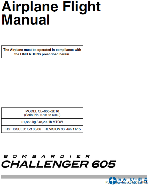 北京藍天飛行翻譯公司完成公務機公司的第33版龐巴迪挑戰(zhàn)者605全套飛行手冊翻譯任務 REVISION 33: Jun 11/15 Bombardier Challenger 605 Flight Manual Translation 第33版龐巴迪挑戰(zhàn)者605飛機飛行手冊 Bombardier Challenger 605 Airplane Flight Manual 主要更新有 Abnormal Procedures: Introduces the following changes to the Airplane Flight Manual: Addition of instructions during AFCS failures. ![]() 第33版龐巴迪挑戰(zhàn)者605機組操作手冊 Bombardier Challenger 605 Flight Crew Operating Manual 主要更新有: Revision to Volume 1 introducing changes to reflect Airplane Flight Manual revision 33: Abnormal Procedures. ![]() 第33版龐巴迪挑戰(zhàn)者605快速檢查單 Bombardier Challenger 605 Quick Reference Handbook 主要更新有: Introduces changes to the QRH to reflect AFM revision 33, Jun 11/15. |