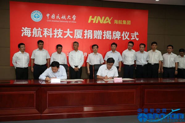 7月20日下午,海航科技大廈捐贈揭牌儀式在中國民航大學隆重舉行。海航集團有限公司通過海南省慈航公益基金會向中國民航大學教育發(fā)展基金會捐贈現(xiàn)金人民幣2000萬元,用于中國民航大學研究生教學實驗樓的建設,雙方同意將該樓永久獨家冠名為“海航科技大廈”。 中國民航大學黨委書記景一宏、校長董健康,海航集團董事局董事、海航實業(yè)集團董事長逯鷹,海南省慈航公益基金會副理事長、秘書長孫明宇共同為“海航科技大廈”揭牌,中國民航大學黨委副書記于劍主持儀式,董健康與逯鷹分別代表雙方簽署中國民航大學研究生教學實驗樓獨家冠名“海航科技大廈”協(xié)議,中國民航大學教育發(fā)展基金會秘書長孫偉與孫明宇分別代表雙方簽署捐贈協(xié)議。 中國民航大學研究生教學實驗樓是該校三期擴建工程中的主要教學建筑之一,位于天津市東麗區(qū)中國民航大學南院新征用地內中部,緊臨科技圖書館和空管教學樓,總占地面積2217㎡,總建筑面積為11614㎡,主要用于實踐教學、理論教學和辦公等教學科研工作。 中國民航大學和海航集團有著長期友好合作的歷史,海航是最早在學校設立獎教獎學金的單位之一,海航集團及所屬成員對中國民航大學的教學科研給予了有力的支持,學校也對海航的發(fā)展給予了大力合作。2007年,中國民航大學與海航集團簽署全面戰(zhàn)略合作框架協(xié)議,本著優(yōu)勢互補、資源共享、互利共贏的原則,雙方建立了“全面、長期、深入、緊密”的戰(zhàn)略合作關系。 據(jù)孫明宇介紹,目前海航在冊人員中,有292名管理干部、4288名員工畢業(yè)于中國民航大學。