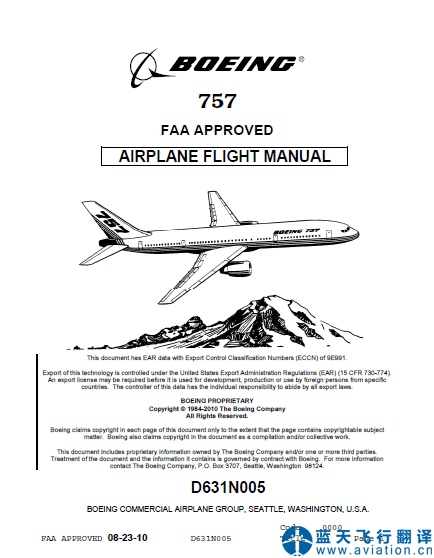 北京藍天飛行翻譯公司承接波音757飛機飛行手冊翻譯任務(wù) Boeing 757 Airplane Flight Manual Translation, B757 AFM ![]() 波音757飛機飛行手冊 Boeing 757 Airplane Flight Manual 波音757飛機飛行手冊(Boeing 757 Airplane Flight Manual)的主要內(nèi)容包含有: CERTIFICATE LIMITATIONS Weight Limitations Performance Operating Weights. Performance Configuration. Operational Limits CENTER OF GRAVITY LIMITS Certification Status Kind of Airplane Operation Flight Maneuvering Load Acceleration Limits Flight Crew. Maximum Operating Limit Speed (VMO/MMO) MAXIMUM AIRSPEED LIMITS Fuel System Fuel Loading Lateral Fuel Imbalance Fuel Usage I Fuel Usage II Fuel Pump Engines Engine Thrust Engine RPM Engine EGT Engine Limit Display Markings Engine Fuel System Engine Ignition. Engine Oil System Reverse Thrust Operation in Icing Conditions Engine Anti-Ice System Cabin Pressurization Autopilot - Flight Director Traffic Alert and Collision Avoidance System (TCAS) VHF Radio Voice Communications Aircraft Communications Addressing & Reporting System (ACARS) Flight Management Computer System (FMCS) Flight Controls Flap Operation Passenger Evacuation Equipment Cooling Ground Operation Configuration Deviation List (CDL) Isolation Valve HF Radio Communications Ground Proximity Warning System Flight Deck Security Door Extended Range Operations EMERGENCY PROCEDURES Emergency Procedures Fire Engine Fire, Severe Engine Damage, or Separation APU Fire Cargo Fire (FWD/AFT) Wheel Well Fire Smoke, Fire or Fumes Smoke or Fumes Removal Dual Engine Failure AC Bus(es) Off Cabin Altitude Warning or Rapid Depressurization Descent Ditching Evacuation Autopilot Elevator Malfunction OPERA TING PROCEDURES Normal Procedures Non-normal Procedures General Engine Data Runway Length Corrections Field Length Limits Takeoff Climb Limits Tire Speed Limits Takeoff Speeds VI (MCG) Limited Takeoff Obstacle Clearance Improved Climb Performance Enroute Climb Approach and Landing Climb Landing Field Length and Speed |