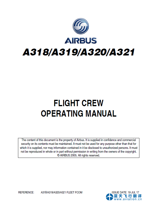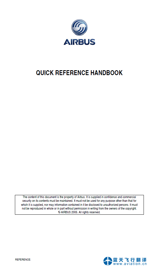 北京藍天飛行翻譯公司完成航空公司2017年7月19日版本空客A320機組使用手冊翻譯任務 A318/A319/A320/A321 FLIGHT CREW OPERATING MANUAL ISSUE DATE: 19 JUL 17 This is the FLIGHT CREW OPERATING MANUAL major event publication at issue date 19 JUL 17 for the A318/A319/A320/A321 and replacing last issue dated 07 JUN 17 ![]() A320機組使用手冊 FLIGHT CREW OPERATING MANUAL 北京藍天飛行翻譯公司完成航空公司2017年6月7日版本空客A320快速檢查單翻譯任務 A318/A319/A320/A321 QUICK REFERENCE HANDBOOK Issue date: 07 JUN 17 This is the QUICK REFERENCE HANDBOOK at issue date 07 JUN 17 for the A318/A319/A320/A321 and replacing last issue dated 17 MAY 17 ![]() A320快速檢查單 QUICK REFERENCE HANDBOOK |
