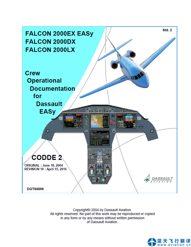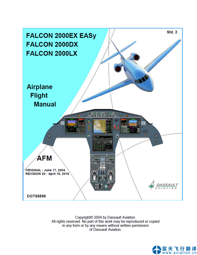 北京藍(lán)天飛行翻譯公司完成2016年4月15日版本達(dá)索獵鷹FALCON 2000飛行手冊翻譯 FALCON 2000 Flight Manual Translation CODDE(Crew Operational Documentation for Dassault EASy) REVISION 18 : April 15, 2016,機(jī)組使用手冊為第18版,2016年4月15日版本 QRH(Quick Reference Handbook) Revision 20 快速檢查單為第20版 AFM(Airplane Flight Manual) REVISION 20 : April 15, 2016 飛機(jī)飛行手冊為第20版,2016年4月15日版本 ![]() FALCON 2000 CODDE(Crew Operational Documentation for Dassault EASy) 達(dá)索獵鷹2000機(jī)組使用手冊 ![]() FALCON 2000 AFM(Airplane Flight Manual) 達(dá)索獵鷹2000飛機(jī)飛行手冊