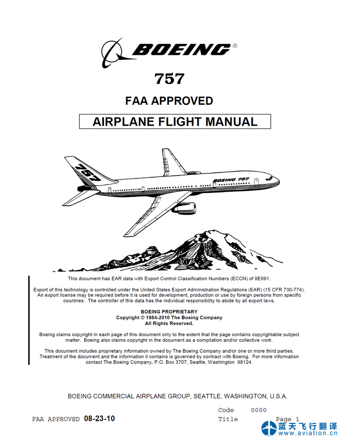北京藍(lán)天飛行翻譯公司完成航空公司波音757飛機(jī)飛行手冊(cè)翻譯任務(wù) Boeing 757 Airplane Flight Manual Translation ![]() 波音757飛機(jī)飛行手冊(cè) 757 Airplane Flight Manual 波音757飛機(jī)飛行手冊(cè)(Airplane Flight Manual)的主要內(nèi)容包含有: CERTIFICATE LIMITATIONS |