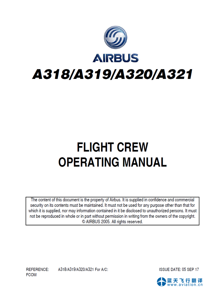 北京藍(lán)天飛行翻譯公司完成航空公司2017年9月5日版本空客A320機(jī)組操作手冊和快速檢查單翻譯任務(wù) A320 FLIGHT CREW OPERATING MANUAL and QUICK REFERENCE HANDBOOK Translation 本次翻譯的機(jī)型乃空客A320系列中的A319-115 ![]() A320飛機(jī)機(jī)組操作手冊 A320 FLIGHT CREW OPERATING MANUAL ![]() A320快速檢查單 A320 QUICK REFERENCE HANDBOOK A320飛機(jī)機(jī)組操作手冊(FLIGHT CREW OPERATING MANUAL)的主要內(nèi)容包含有: FCOM - 05 SEP 17 |