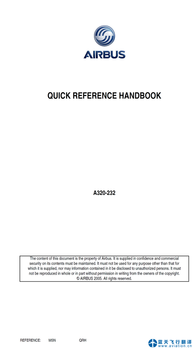 北京藍(lán)天飛行翻譯公司承接大型公務(wù)機(jī)公司的2019年6月5日版本空客公務(wù)機(jī)ACJ319和ACJ320飛行機(jī)組操作手冊(FCOM FLIGHT CREW OPERATING MANUAL)、ACJ319和ACJ320快速檢查單(QRH QUICK REFERENCE HANDBOOK)和ACJ319和ACJ320飛機(jī)飛行手冊(AIRPLANE FLIGHT MANUAL)翻譯任務(wù) 05 JUN 19 ACJ319/ACJ320 FLIGHT CREW OPERATING MANUAL, QRH QUICK REFERENCE HANDBOOK and AIRPLANE FLIGHT MANUAL Translation 本次翻譯的空客公務(wù)機(jī)機(jī)型有A319-133和A320-232。 ![]() ACJ319/ACJ320 FLIGHT CREW OPERATING MANUAL ACJ319/ACJ320 飛行機(jī)組操作手冊 ![]() ACJ319 QUICK REFERENCE HANDBOOK ACJ319 快速檢查單 ![]() ACJ320 QUICK REFERENCE HANDBOOK ACJ320 快速檢查單 ![]() ACJ319/ACJ320 AIRPLANE FLIGHT MANUAL ACJ319/ACJ320 飛機(jī)飛行手冊 |