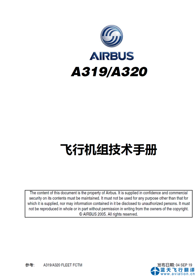 北京藍(lán)天飛行翻譯公司完成航空公司45架空客A320 FCOM、AFM和FCTM翻譯任務(wù) 04 SEP 19 A320 FLIGHT CREW OPERATING MANUAL, QUICK REFERENCE HANDBOOK and AIRPLANE FLIGHT MANUAL Translation