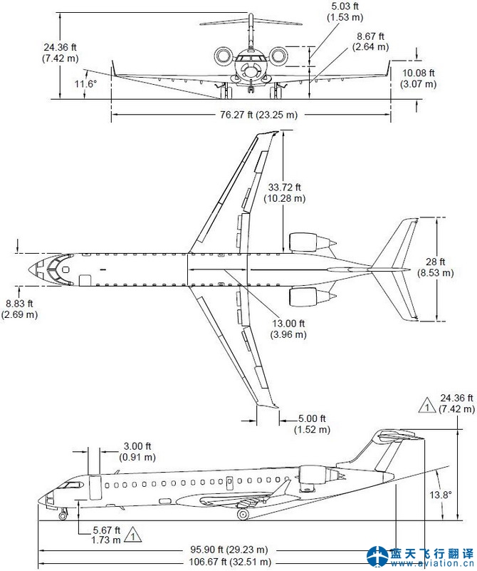 ![]() CRJ700飛機(jī)尺寸 ![]() CRJ700 快速檢查單 CRJ700 QUICK REFERENCE HANDBOOK ![]() CRJ700 快速檢查單 CRJ700 QUICK REFERENCE HANDBOOK CRJ700飛機(jī)是CRJ200飛機(jī)的加長型,兩者在機(jī)體結(jié)構(gòu)和操縱使用方面具有很高的通用性。與CRJ200相比,CRJ700的主要特點是:通過在CRJ200中機(jī)身的前、后方加入艙段,增大了 ![]() 采用帶有翼翹的后掠式下單翼;后部機(jī)身靠上安裝兩臺通用電氣CF34渦輪風(fēng)扇發(fā)動機(jī);具有后掠式T型垂直尾翼和水平尾翼。其機(jī)翼前緣前伸,并加裝了前緣縫翼。主起落架結(jié)構(gòu)也進(jìn)行了加強(qiáng),采用新的輪胎和剎車系統(tǒng),設(shè)計壽命提高。 除特別指明外,以下描述均針對CRJ701與CRJ200的不同之處。 機(jī)身 前機(jī)身加長3.96m,后機(jī)身加長0.76m。 機(jī)翼 翼展增加1.83m。機(jī)翼前緣前伸,并加裝了前緣縫翼。 尾翼 尾翼增大了平尾面積。 起落架 液壓收放的前三點起落架,均為雙輪,由美國古德里奇公司提供。設(shè)計壽命提高到80000次起降。主起落架支柱延長,采用新的機(jī)輪、輪胎和剎車裝置,其中輪胎壽命提高到250~400次著陸 ![]() 動力裝置 2臺尾吊安裝的CF34-8C1渦扇發(fā)動機(jī),單臺額定推力為56.4kN(不包括自動功率儲備)或61.3kN(包括自動功率儲備),可在氣溫30。C,其他條件符合國際標(biāo)準(zhǔn)大氣的情況下保持推力。CRJ705換裝了CF34-8C5渦扇發(fā)動機(jī),單臺額定推力為58.4kN(不包括自動功率儲備)或64.5kN(包括自動功率儲備)。CRJ705還可選裝CF34-8C5A1渦扇發(fā)動機(jī)。有反推力裝置。全權(quán)數(shù)字電子控制。機(jī)內(nèi)總?cè)加腿萘繛?0989L,有壓力和重力加油口。[5] 駕駛艙與客艙 全增壓機(jī)艙,雙人制駕駛艙?团摌(biāo)準(zhǔn)布局為70座,每排4座并有中央通道,排距79cm,中央通道寬41cm,高1.89m?团摰匕褰档2.5cm,頂板抬高1.3cm,舷窗位置抬高11.5cm。衣櫥、廚房和盥洗室有多種組合方式,具體取決于客艙布局。重新設(shè)計了頭頂行李柜,并在客艙前部地板下方左側(cè)新設(shè)1個容 ![]() ![]() |