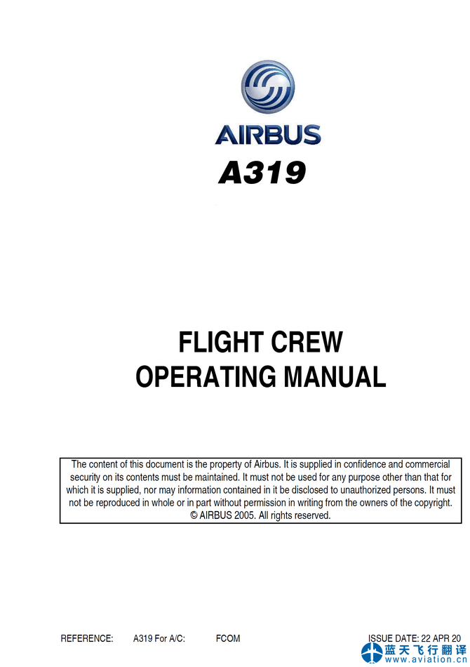 北京藍(lán)天飛行翻譯公司完成大型公務(wù)機(jī)公司的2020年4月22日版本空客公務(wù)機(jī)ACJ319飛行機(jī)組操作手冊(FCOM FLIGHT CREW OPERATING MANUAL)、ACJ319快速檢查單(QRH QUICK REFERENCE HANDBOOK)和ACJ319飛機(jī)飛行手冊(AIRPLANE FLIGHT MANUAL)翻譯任務(wù) 22 APR 20 ACJ319 FLIGHT CREW OPERATING MANUAL, QRH QUICK REFERENCE HANDBOOK and AIRPLANE FLIGHT MANUAL Translation