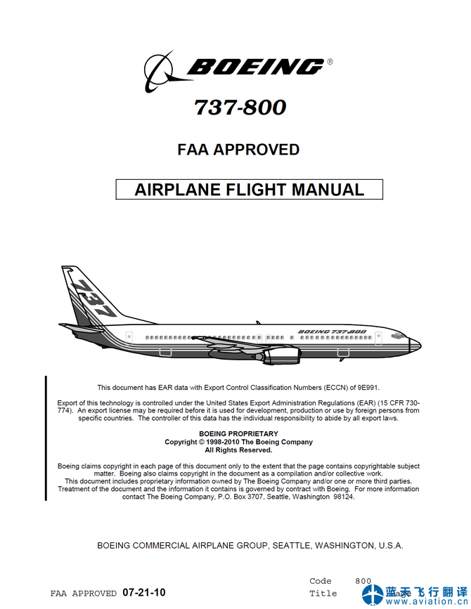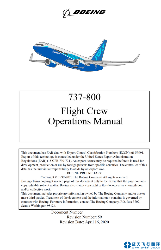 北京藍(lán)天飛行翻譯公司承接航空公司的737-800飛行機(jī)組使用手冊(cè)、快速檢查單和飛機(jī)飛行手冊(cè)翻譯任務(wù) 737-800 Flight Crew Operations Manual, Quick Reference Handbook and Airplane Flight Manual Translation