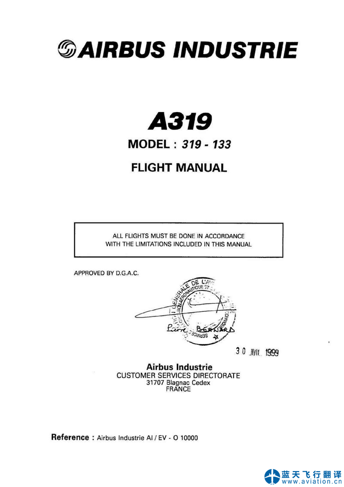 北京藍天飛行翻譯有限公司完成大型公務(wù)機公司的2020年12月14日空客ACJ319和ACJ320快速檢查單(QRH QUICK REFERENCE HANDBOOK)和飛機飛行手冊(AIRPLANE FLIGHT MANUAL)翻譯任務(wù) 14 DEC 20 ACJ319 and ACJ320 QRH QUICK REFERENCE HANDBOOK and AIRPLANE FLIGHT MANUAL Translation